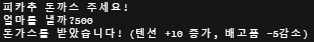 System.out.println("피카추 돈까스 주세요!");